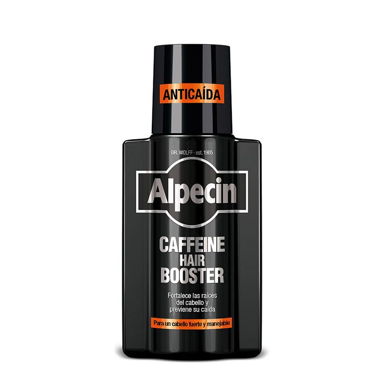 Alpecin Caffeine Hair Booster es un tónico capilar diseñado para prevenir la caída del cabello y fortalecer sus raíces. Su fórmula activa, potenciada con el Caffeine Complex, penetra directamente en el cuero cabelludo para revitalizar las raíces y asegurar un crecimiento capilar fuerte. Además, contiene Niacina y Zinc, que juntos contribuyen a la salud del cuero cabelludo y a mejorar la resistencia del cabello. Este producto es una excelente opción para quienes buscan un cabello más fuerte, manejable y con mayor vitalidad.ESPECIFICACIONES: Para un uso óptimo, primero seca tu cabello con una toalla para quitar el exceso de agua. Usa la punta dosificadora para aplicar el tónico directamente sobre el cuero cabelludo. Masajea suavemente para asegurar una distribución uniforme del producto y para estimular la absorción. Deja que seque por un momento y luego peina tu cabello como de costumbre. No es necesario enjuagar. INDICACIONES: Alpecin Caffeine Hair Booster es ideal para el uso diario en todo tipo de cabello, especialmente para aquellos que se encuentran en riesgo de caída. No se conocen contraindicaciones significativas; sin embargo, si notas alguna reacción cutánea o irritación, detén su uso y consulta a un profesional de la salud. PRINCIPIOS ACTIVOS: Los principales ingredientes activos de este producto son: el Caffeine Complex, que energiza las raíces del cabello; la Niacina, que mejora la circulación del cuero cabelludo; y el Zinc, un mineral esencial para la salud y el crecimiento del cabello.