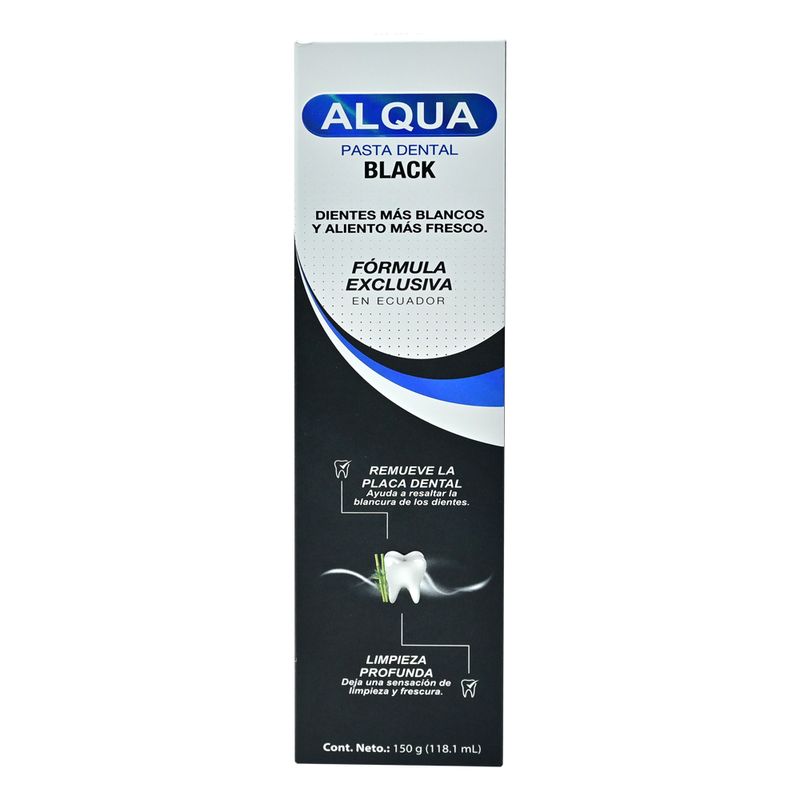 Alqua-D Pasta Dental Black 150 g está formulada con carbón activado para una limpieza profunda y efectiva. Su fórmula innovadora no solo combate bacterias y protege contra caries, sino que también ayuda a blanquear los dientes, eliminando manchas y proporcionando una sonrisa más brillante. Además, ofrece una frescura duradera y un aliento limpio, gracias a su capacidad para eliminar los restos de comida y el mal olor. Ideal para quienes buscan una pasta dental que combine limpieza profunda con beneficios de blanqueamiento, Alqua-D Pasta Dental Black garantiza una higiene bucal completa y eficiente.