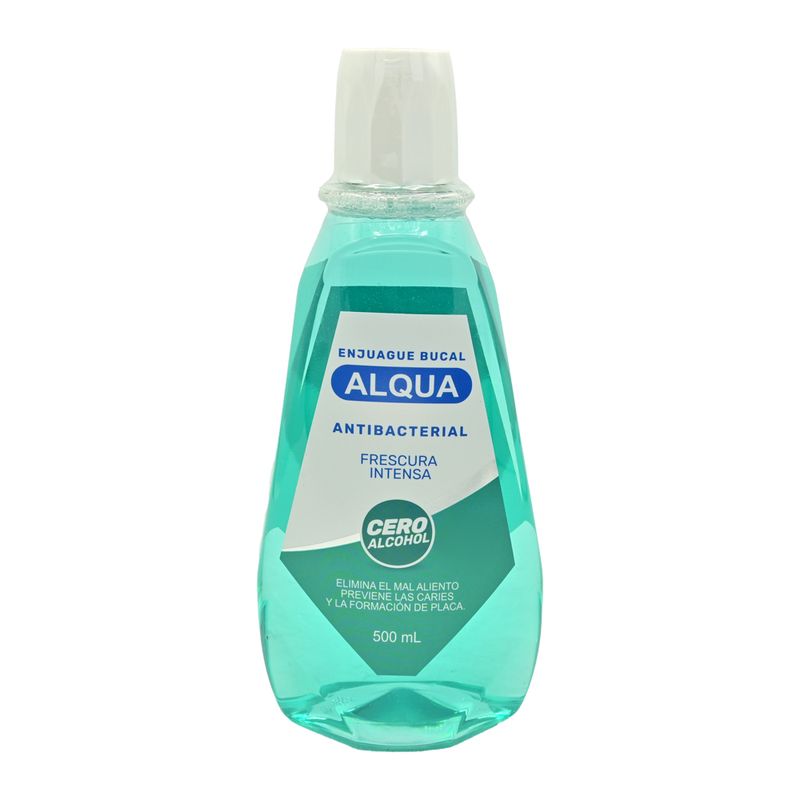 Alqua Enjuague Bucal Antibacterial Frescura Intensa, en su presentación de 500 ml, brinda una limpieza bucal profunda y efectiva gracias a su fórmula antibacteriana que elimina hasta el 99.9% de las bacterias. Libre de alcohol, este enjuague bucal es suave con las encías, evitando la irritación común de otros productos mientras mantiene una frescura intensa y duradera en cada uso.
