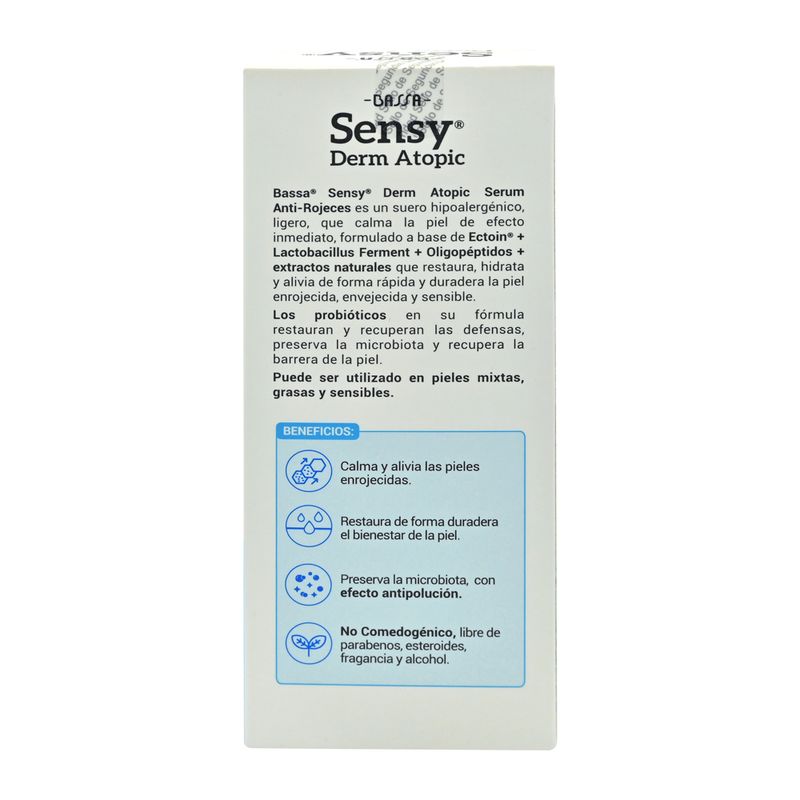 El Sérum Bassa Sensy Derm Atopic en frasco de 30 ml está especialmente formulado para el cuidado de pieles atópicas y sensibles. Proporciona una hidratación intensa y prolongada, ayudando a calmar irritaciones y reducir la sensación de incomodidad. Su fórmula ligera se absorbe rápidamente, fortaleciendo la barrera cutánea y restaurando la elasticidad natural de la piel. Ideal para el uso diario, mejora visiblemente la textura y aporta suavidad desde la primera aplicación. Una solución efectiva para una piel saludable y protegida.