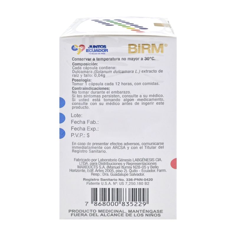 Birm Cápsulas Inmunomodulador Frasco con 90 Unidades