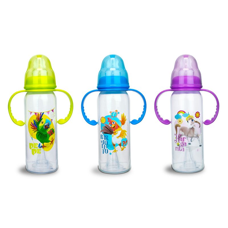 Agarradera ergonómica que ayuda al bebé a sostener el biberón mientras aprende a comer. Combina capacidad con facilidad de agarre, diseñado para bebés activos y curiosos.