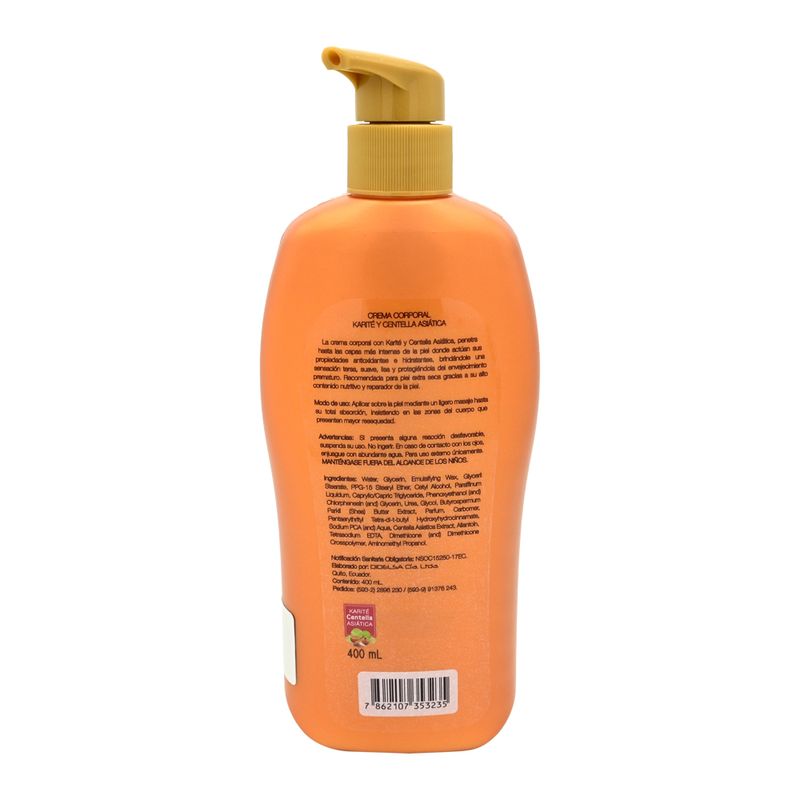 Celderma Crema Corporal Karité Butter 400 g está enriquecida con manteca de karité, conocida por sus propiedades hidratantes y nutritivas. Esta crema está diseñada para proporcionar una hidratación profunda y duradera, ideal para pieles secas o deshidratadas. Su fórmula suave y de rápida absorción deja la piel suave, flexible y protegida contra la resequedad. Con su textura rica y cremosa, ayuda a restaurar la barrera natural de la piel, brindando una sensación de confort y suavidad a lo largo del día. Perfecta para el cuidado diario del cuerpo.