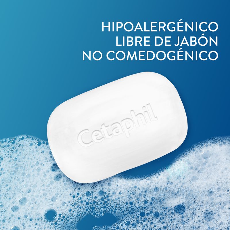 Masajea el producto en tus manos generando espuma suave, luego masajea en el rostro evitando el contorno de los ojos y en el cuerpo y luego enjuaga. Beneficios: 1. Esta barra sin jabón de Cetaphil está formulada con 5 ingredientes nutritivos para limpiar suavemente la piel sin resecarla. 2. Mantiene la barrera de humedad natural de la piel dejando una sensación suave y limpia. 3. Defiende contra 5 signos de sensibilidad de la piel, que incluyen una barrera cutánea debilitada, molestias, aspereza, tirantez y resequedad.