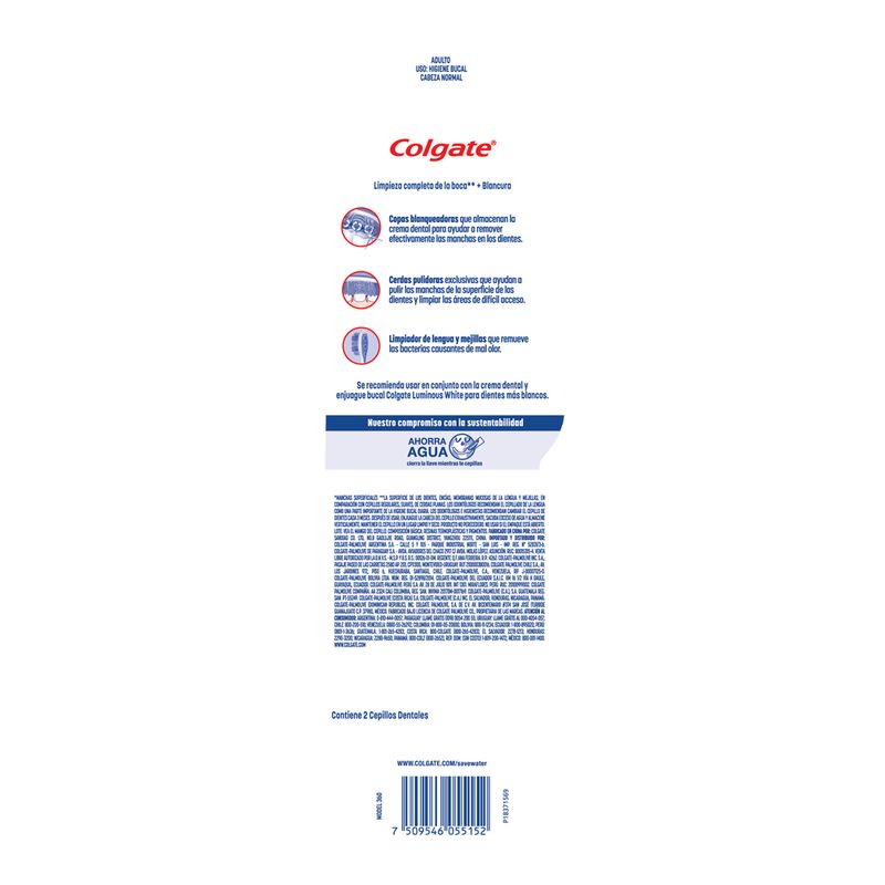 Colgate Cepillo Dental Luminous White Mediano 2x1 1 Unidad
