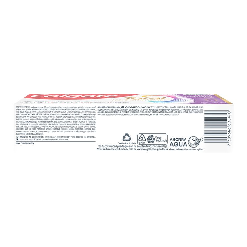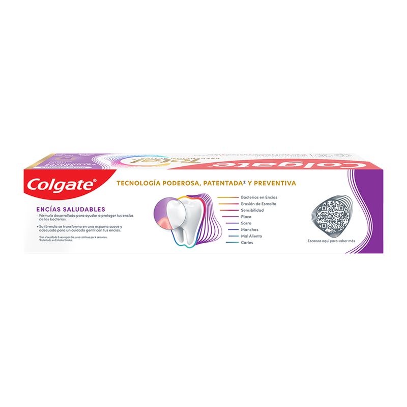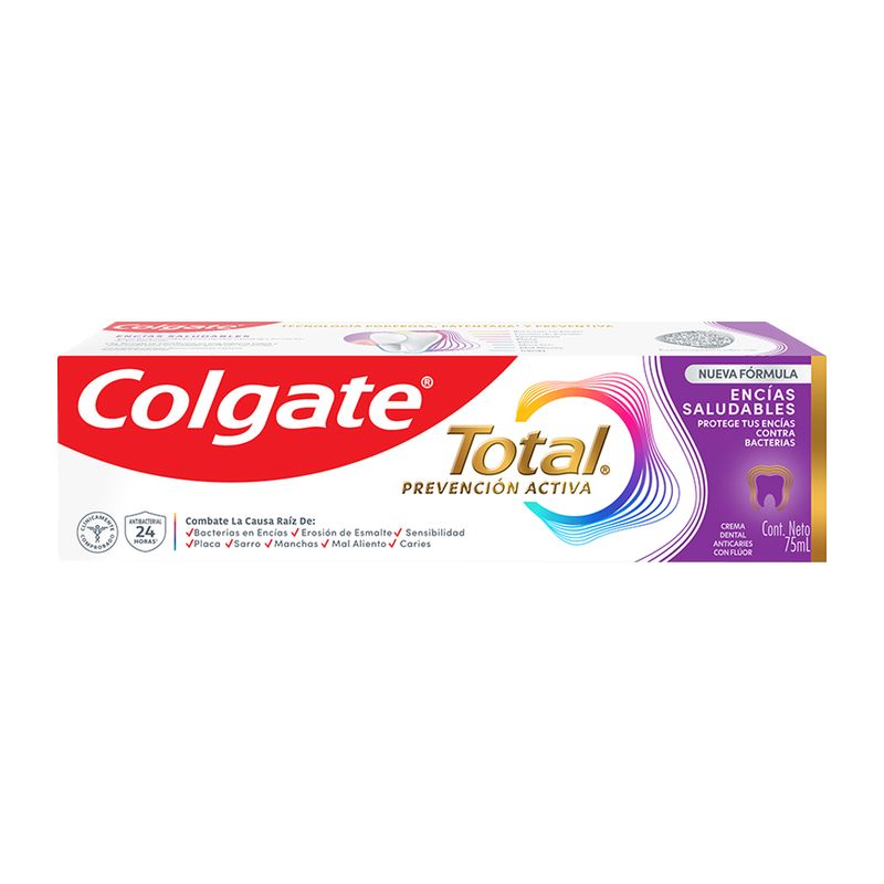 Colgate Pasta Dental Profunda Encias Saludables 75 ml. Beneficios: • Protección anticaries (con flúor). • Multiprotección y cuidado de las encías. • Antibacterial • Ayuda a prevenir la placa, la gingivitis, la acumulación de sarro, la caries y el mal aliento.