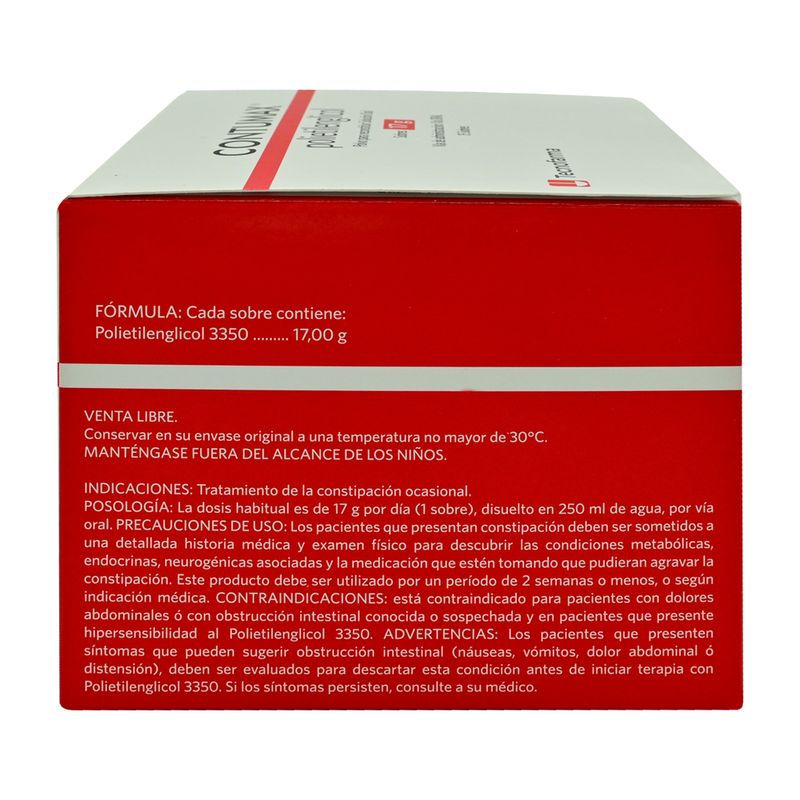 𝗗𝗢𝗦𝗜𝗙𝗜𝗖𝗔𝗖𝗜𝗢𝗡: Adultos: Un sobre diario. La dosis usual es de 17 g por día, para lo que el sobre que contiene el medicamento debe ser disuelto en 250 ml de agua. Para asegurar que produzca el efecto terapéutico deseado se recomienda la ingestión rápida de la solución, preferentemente por la mañana.