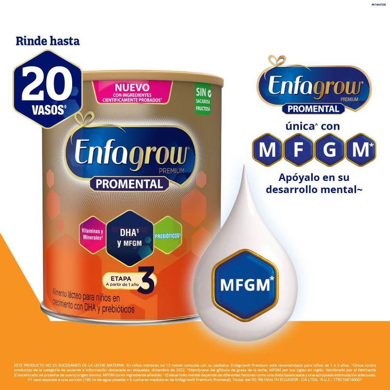 Enfagrow Premium es un alimento lácteo sabor vainilla para niños en crecimiento con DHA y prebióticos. Apoyan el desarrollo mental. Beneficios: