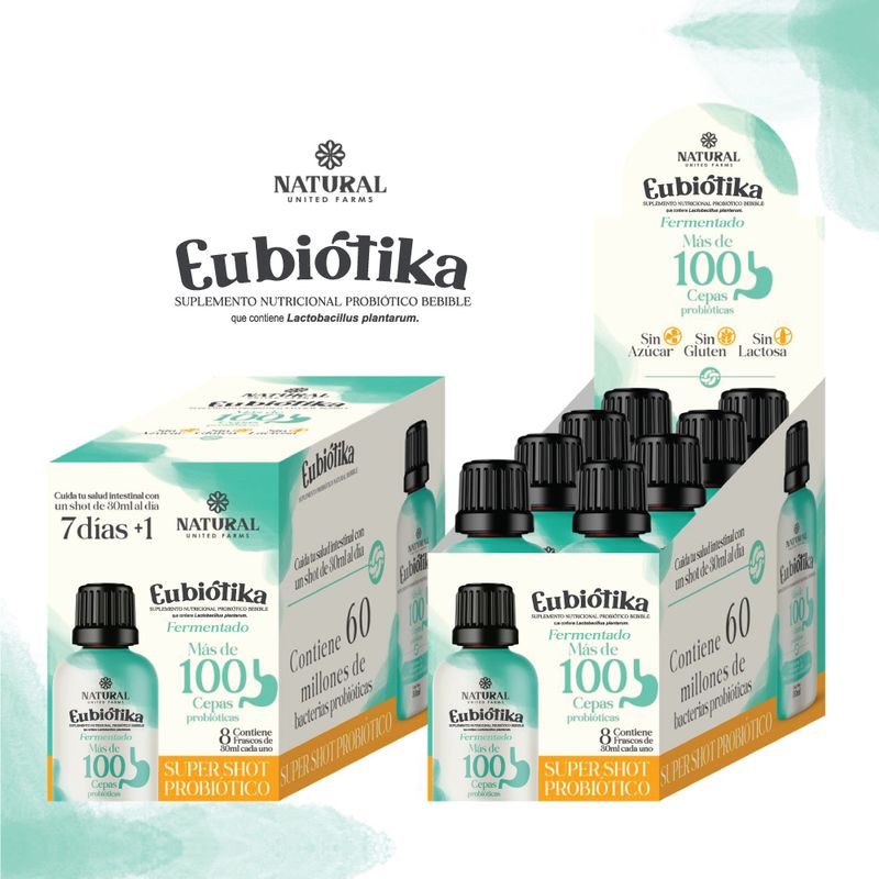 Eubiótika es un suplemento probiótico bebible con prebióticos y posbióticos que optimiza la salud digestiva y fortalece el equilibrio intestinal. Este producto es dirigido a hombres y mujeres a partir de los 5 años de edad.