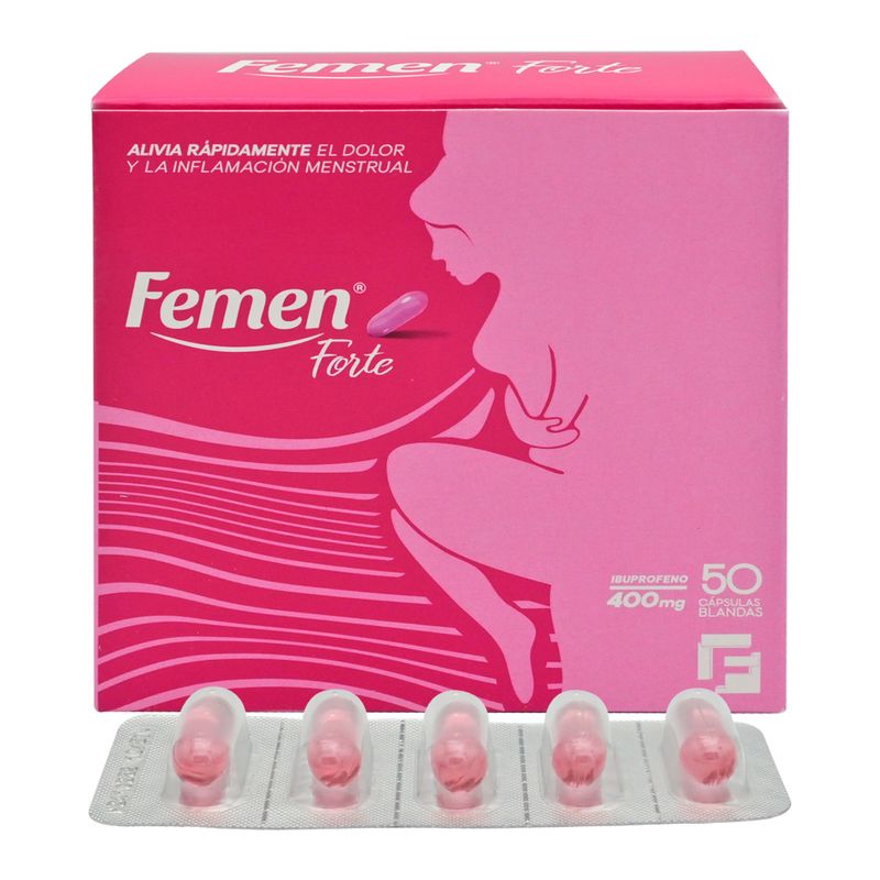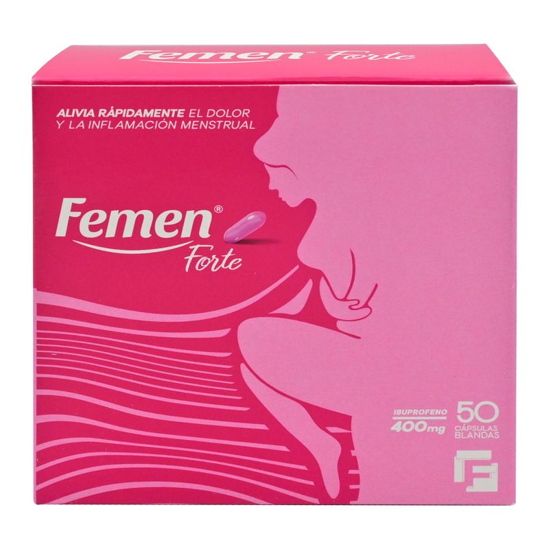 𝗗𝗢𝗦𝗜𝗙𝗜𝗖𝗔𝗖𝗜𝗢𝗡: Para aliviar el dolor menstrual es de 1 200 a 1 600 mg máximo. Dismenorrea primaria: Una o dos cápsulas de 200 mg de FEMEN cada 6-8 horas. Una cápsula de 400 mg de FEMEN FORTE cada 6-8 horas, de acuerdo al criterio médico. Una o dos cápsulas de 200 mg, cada 6-8 horas. Una cápsula de 400 mg cada 6-8 horas. Dosis máxima: 1200 a 1600 mg/diarios.