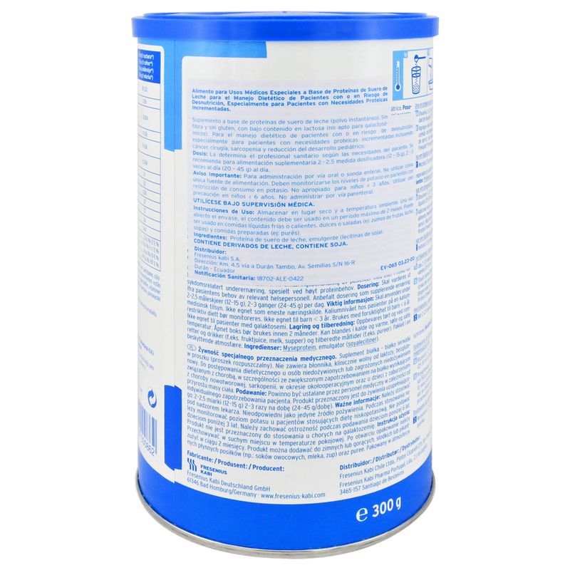 No se recomienda su uso en personas con alergia a la proteína de la leche o intolerancias a sus componentes. Debe emplearse con supervisión médica en pacientes con insuficiencia renal o dietas restringidas en proteínas. No es apto como única fuente de nutrición.