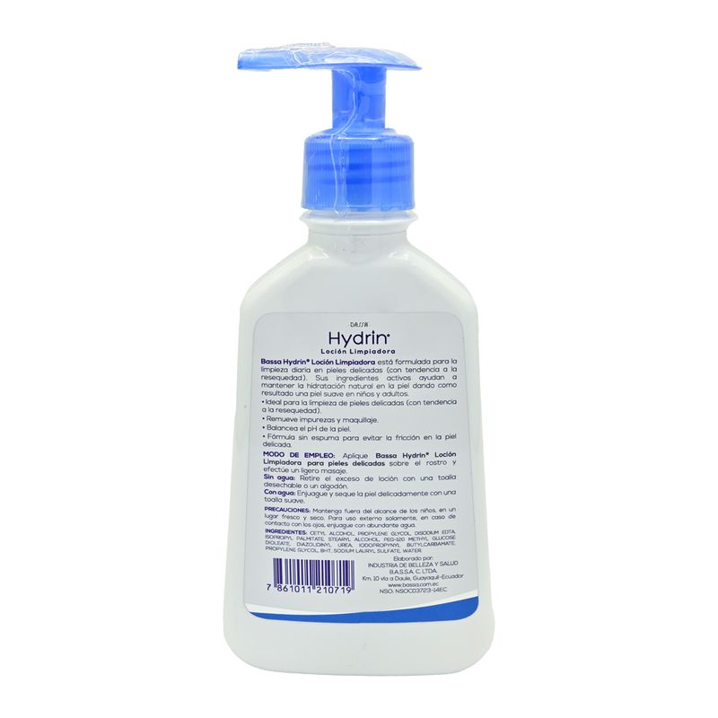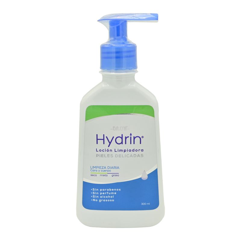 Hydrin Loción Limpiadora es una fórmula suave y efectiva que remueve impurezas y exceso de grasa sin alterar el equilibrio natural de la piel. Enriquecida con ingredientes hidratantes, esta loción limpia profundamente sin resecar, proporcionando una sensación de frescura y suavidad. Su textura ligera es adecuada para todo tipo de piel, incluyendo las más sensibles. Perfecta para el uso diario, ayuda a mantener la piel libre de impurezas y radiante. Presentación en frasco de 300 ml, ideal para el cuidado facial y corporal.