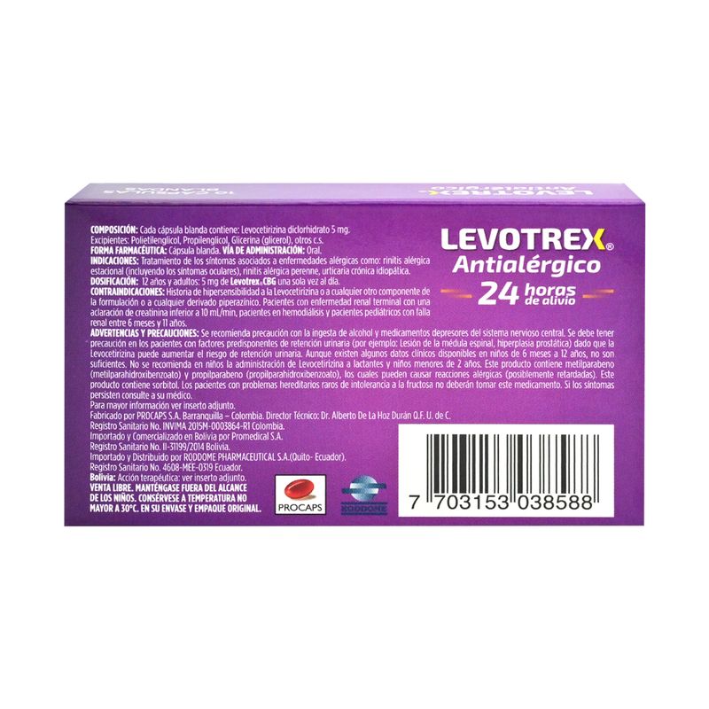 𝗣𝗥𝗜𝗡𝗖𝗜𝗣𝗜𝗢 𝗔𝗖𝗧𝗜𝗩𝗢: Levocetirizina 5 mg