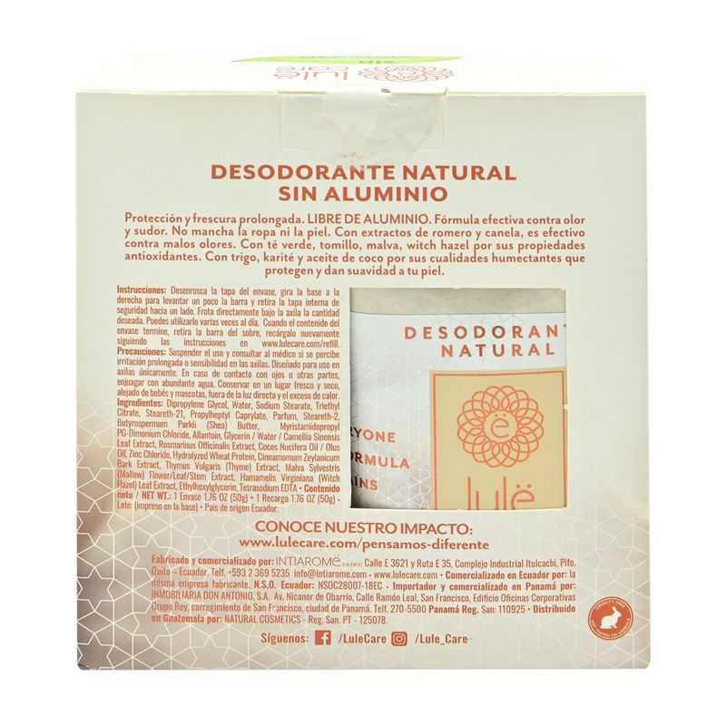 LULE CARE DEO BARRA NATU TRUE SHEA *50G – ESPECIFICACIONES (MODO DE USO / RECOMENDACIONES): Desodorante en barra natural con manteca de karité, diseñado para hidratar la piel y ofrecer frescura diaria sin obstruir la transpiración. INDICACIONES O CONTRAINDICACIONES: Indicado para quienes buscan un desodorante libre de aluminio, triclosán y parabenos, y con ingredientes de origen natural; no mancha la piel ni la ropa. PRINCIPIO(S) ACTIVO(S): Manteca de karité y extractos naturales que aportan hidratación y protección contra el mal olor de forma dulce, suave y efectiva.