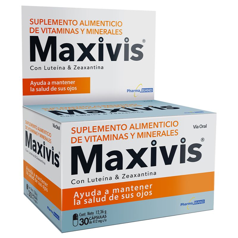 Maxivis, Vitamina Ocular, para el cuidado de los ojos, contiene vitaminas y minerales con función antioxidante que ayuda a reponer nutrientes esenciales para mantener la salud ocular. Previene la degeneración macular que causa pérdida gradual de la visión.