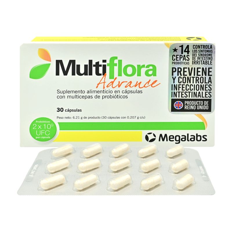 MULTIFLORA Advance cápsulas esta específicamente formulado para traer efectos restauradores y profilácticos para el mantenimiento de un sistema digestivo e inmune sanos.