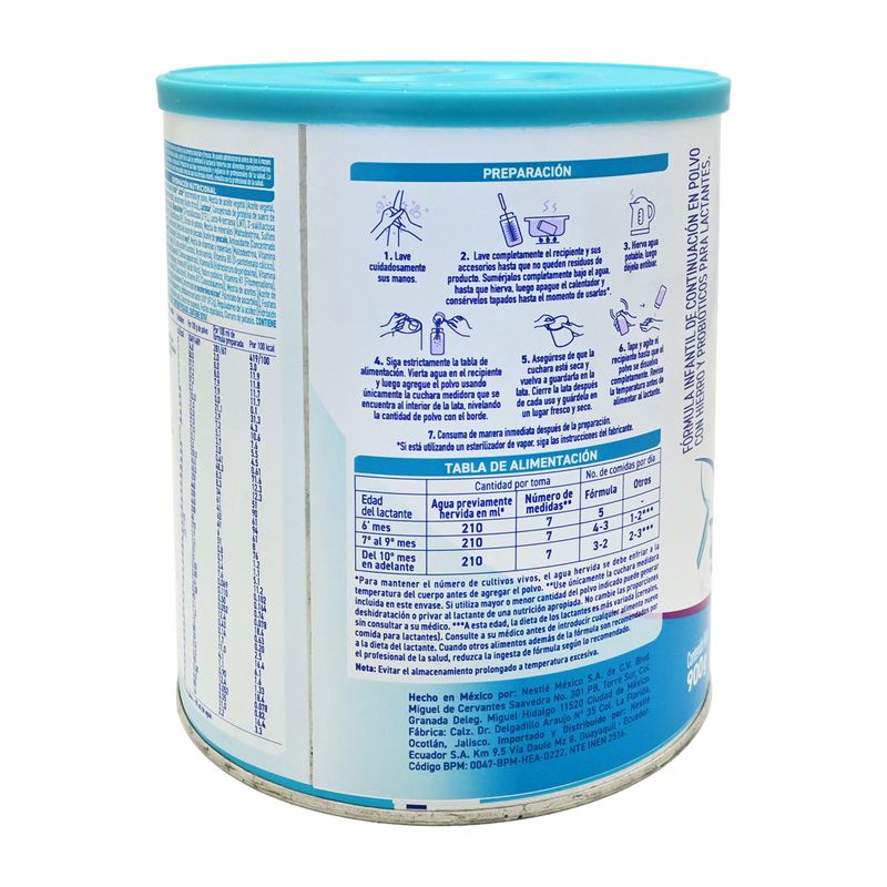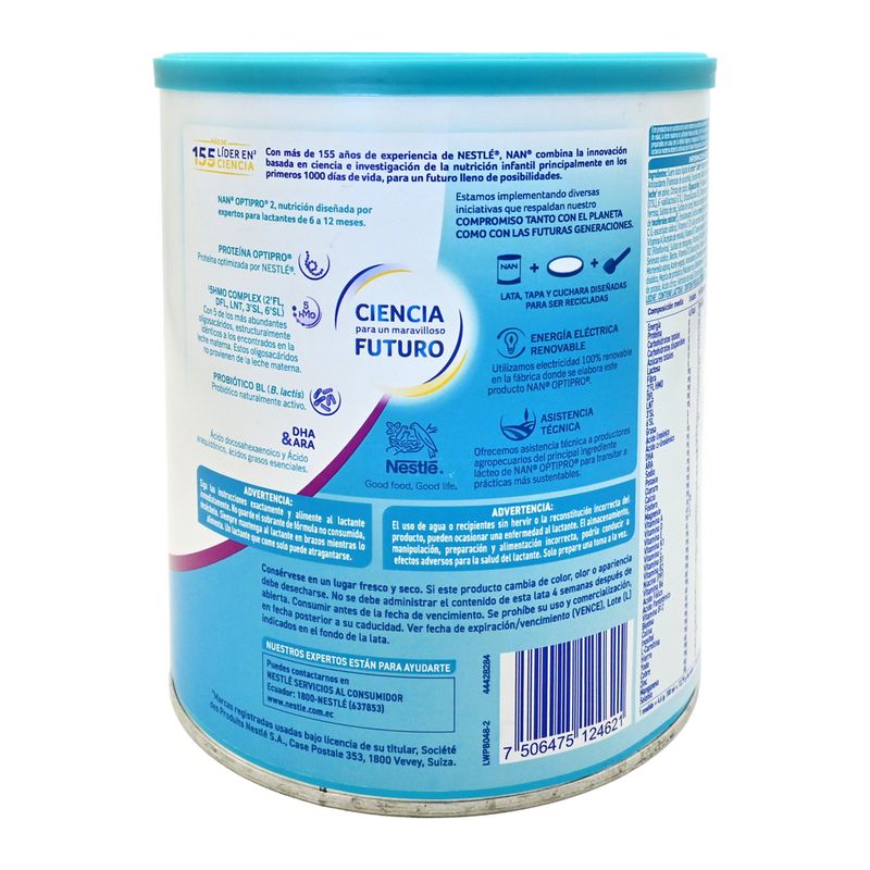 La leche materna es el mejor alimento para la salud y nutrición de su lactante, por ser el único alimento completo, accesible e irremplazable. Este producto no debe ser la única fuente de alimentación para su lactante. La fórmula de continuación NAN® Optipro® 2, en combinación con otros alimentos complementarios adecuados, entrega a su bebé nutrientes esenciales para su normal desarrollo físico y mental.