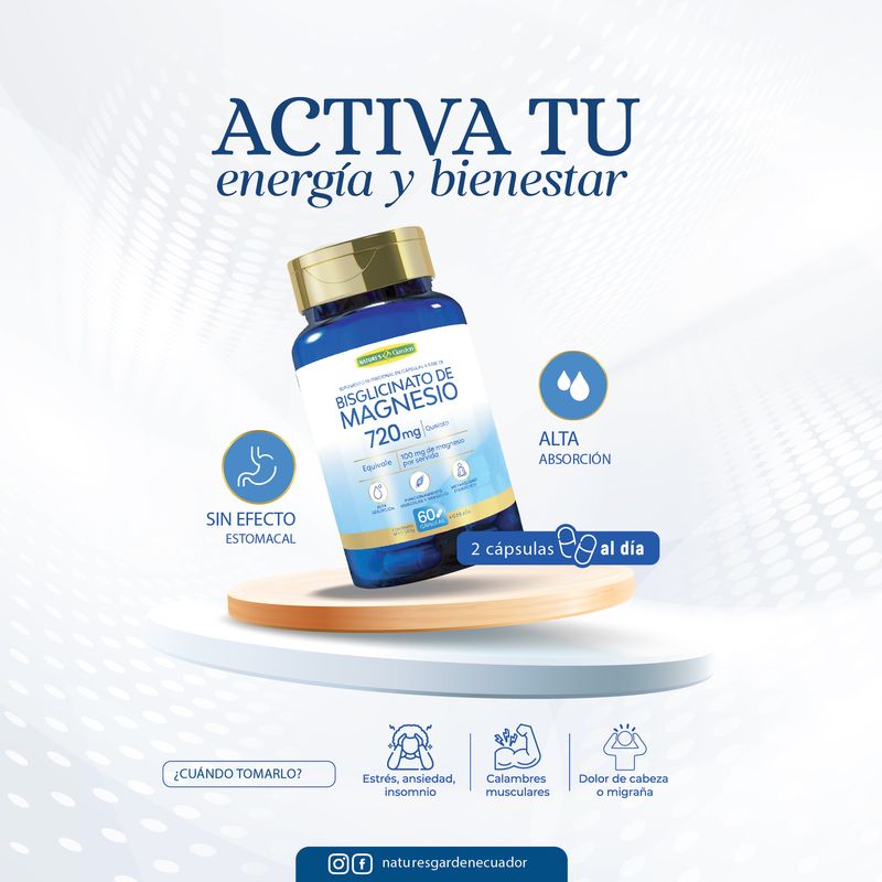 Mejora tu energía y rendimiento con Bisglicinato de Magnesio de Nature’s Garden. Contiene magnesio de alta absorción que aporta magnesio para optimizar el funcionamiento muscular y nervioso, y reducir el cansancio.