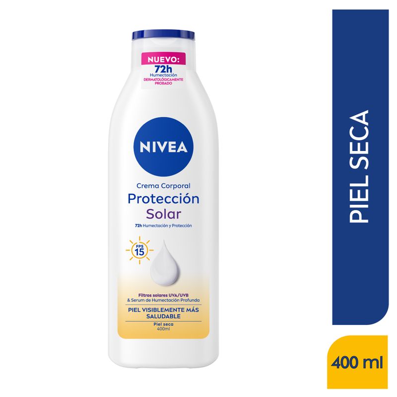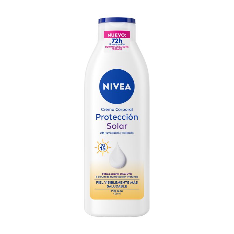 Nivea Body Protección Solar 400ml, piel suave y con apariencia saludable en cada uso. Humectación profunda por 72h.