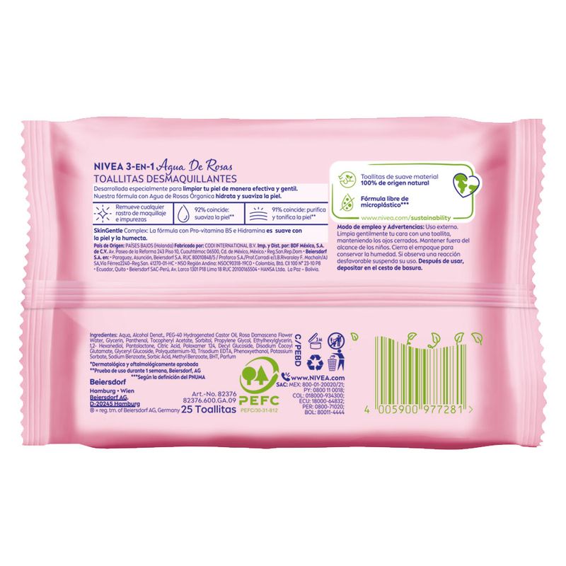 BellezaCuidado FacialNivea Toallitas Desmaquillantes Agua De Rosas 25 Unidades