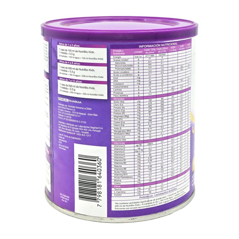Suplemento nutricional completo en polvo para niños de 1 a 10 años con dietas insuficientes. Ideal para la recuperación nutricional que facilitan la digestión y la absorción de nutrientes. Presentación 400 gr.