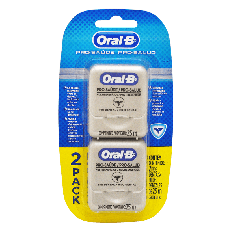 Oral-B Hilo Dental Pro-Salud es el complemento perfecto para tu rutina de higiene oral. Este paquete contiene 2 rollos de 25 metros cada uno, diseñados para eliminar eficazmente la placa dental y los residuos entre los dientes y debajo de la línea de las encías. Su textura suave y resistente facilita su uso, proporcionando una limpieza profunda sin irritar las encías. Ideal para mantener una sonrisa saludable y fresca todos los días.