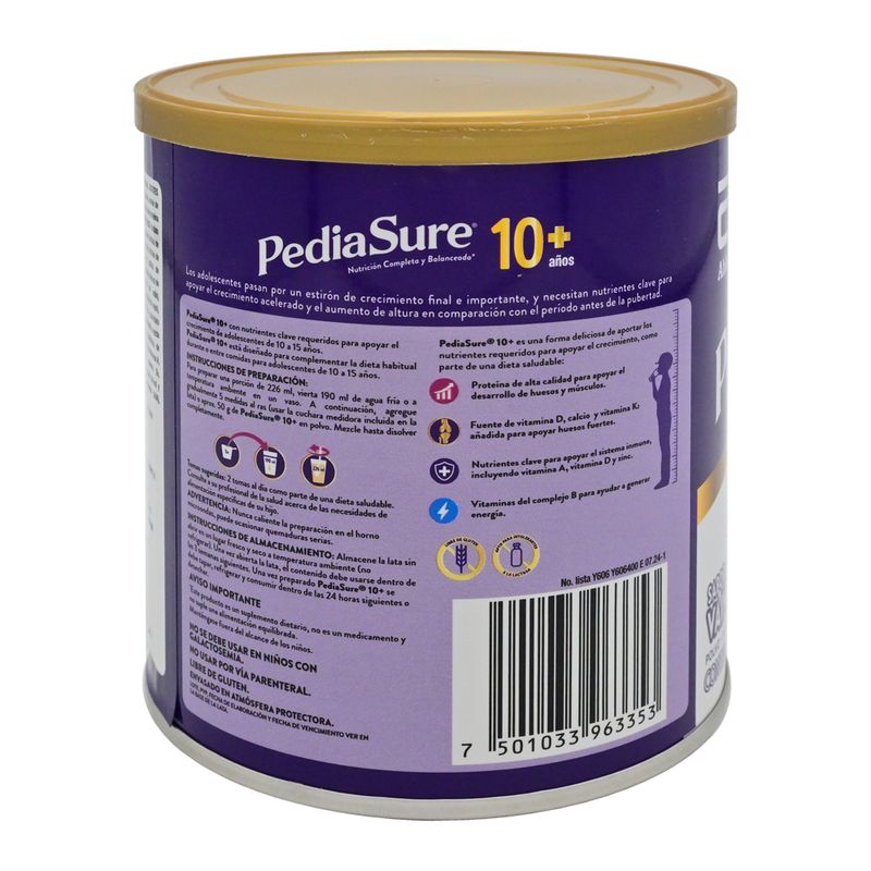 Pediasure 10+ Vainilla 400 g es un complemento nutricional diseñado para adolescentes de 10 a 15 años. Su fórmula completa y balanceada aporta proteínas, vitaminas y minerales esenciales que apoyan el crecimiento, fortalecen los huesos, brindan energía y refuerzan el sistema inmune.