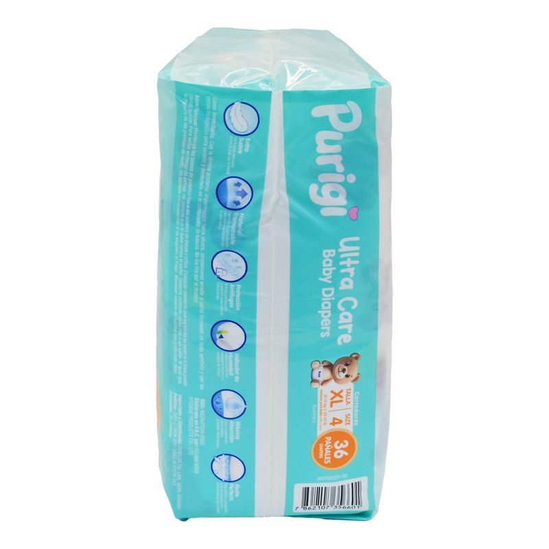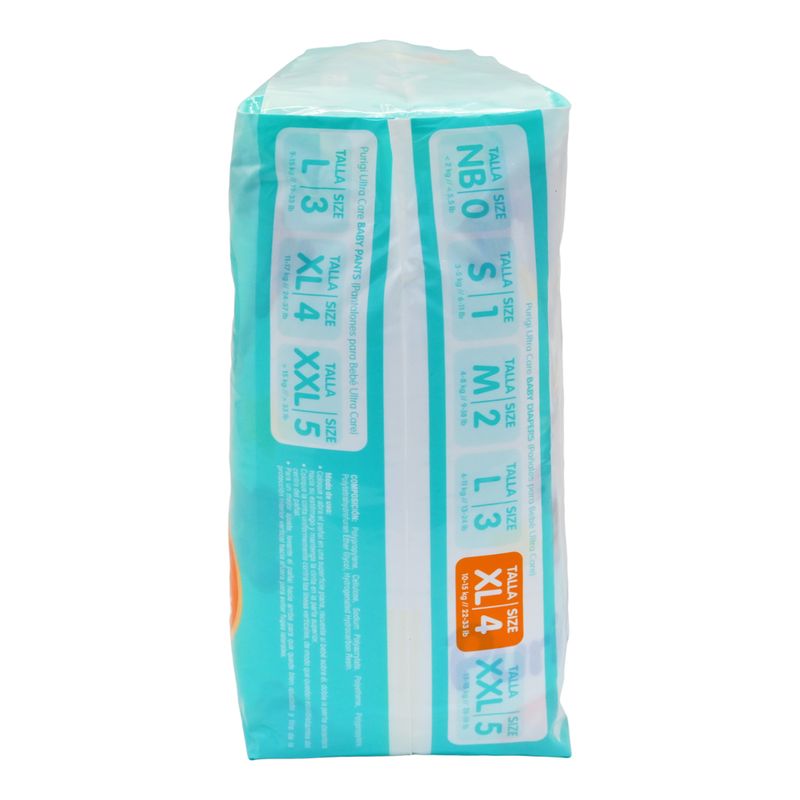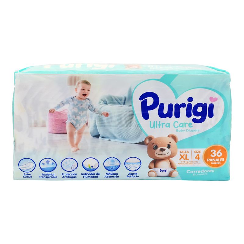 Purigi Pañal Infantil Ultra Care Baby XXL-4 combina alta absorción, suavidad y ajuste cómodo para bebés en crecimiento. Su núcleo retiene la humedad de manera efectiva, manteniendo la piel seca y protegida. Ideal para uso prolongado, brinda confianza, comodidad y libertad de movimiento gracias a su diseño flexible y seguro.