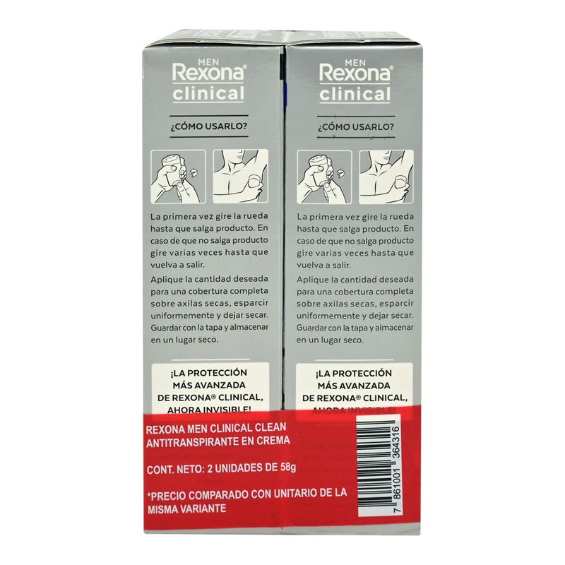 Rexona Desodorante Crema Clinical Clean XL 58 g 2 Unidades