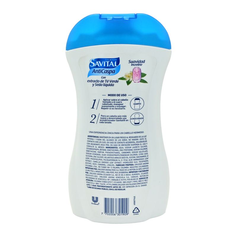 BellezaCuidado CapilarShampooSavital Shampoo Anticaspa Té Verde-Seda 510 ml