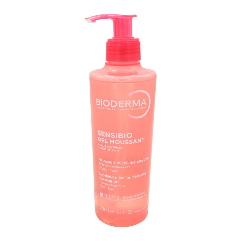 Bioderma Sensibio Gel Moussant 200 ml. 𝗕𝗘𝗡𝗘𝗙𝗜𝗖𝗜𝗢𝗦: El gel micelar limpiador y calmante que refuerza la hidratación natural de la piel. Limpia con suavidad y elimina el maquillaje del rostro y los ojos, hidrata, calma y alivia la piel sensible y sensibilizada. 𝗖𝗢𝗠𝗣𝗢𝗡𝗘𝗡𝗧𝗘𝗦: Patente D.A.F, Base limpiadora libre de jabón, Glucósido de Coco, Gliceril Oleato. 𝗣𝗥𝗘𝗦𝗘𝗡𝗧𝗔𝗖𝗜𝗢𝗡: Frasco dispensador 200 ml 𝗣𝗢𝗦𝗢𝗟𝗢𝗚𝗜𝗔: Uso diario, mañana y noche.