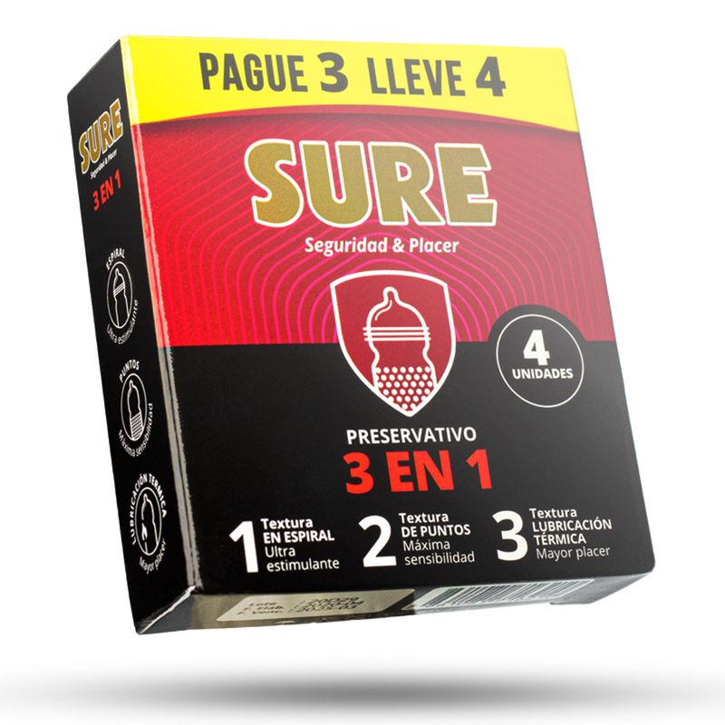 Salud SexualPreservativosSure Preservativos 3-1 Caja 4 Unidades