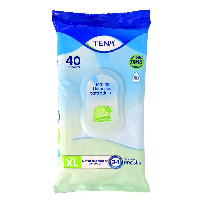 Nuevos pañitos húmedos para adulto ahora con tela libre de plástico y biodegradable para complementar la rutina de higiene después del cambio de cada pañal. Con tecnología ProSkin, exclusiva de TENA con componentes que cuidan y protegen la piel de los adultos. Humectan, protegen y limpian en cada uso. Prueba ahora estos pañitos húmedos especializados en incontinencia.