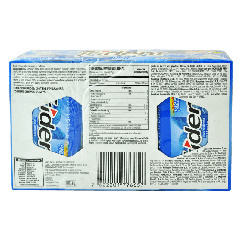 MinimarketSnacks y GolosinasTrident Chicles Menta 8.5G Caj*18